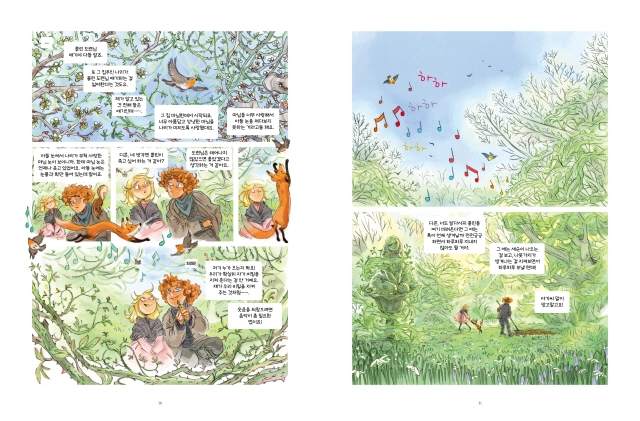 프랑스의 젊은 만화가 모드 베곤은 독자들의 시선을 한눈에 사로잡는 화풍으로 신비롭고 아름다운 정원을 완성했다. 자유롭게 지면을 나누고 또 채워 다채로운 꽃과 풀, 비밀의 정원이 지닌 독특한 매력을 잘 보여 준다. 봄여름이 선사하는 화사함, 화려한 꽃이나 특이한 수형의 나무들을 매우 생생하고 세심하게 그려 내 한 장 한 장 책장을 넘길 때마다 실제로 어느 아름다운 정원에 서 있는 듯한 기분마저 든다. 또한 정원과 어우러져 사는 새를 비롯한 다람쥐, 양, 여우 등 다양한 동물은 물론이고, 영국 귀족 대저택의 모습 또한 섬세하게 복원했다. 무겁고 차분한 분위기의 대저택과 부드럽고 화려한 색감의 대자연을 비교해 가며 보는 재미 또한 쏠쏠하다.