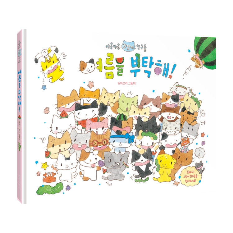 귀염뽀짝하고 감성적인 그림으로 우리나라뿐 아니라 대만과 일본에서도 사랑받고 있는 토마쓰리 작가가 이번에는 서른세 마리 고양이들과 함께 시~원한 여름 이야기를 들려줍니다. 《야옹야옹 고양이 친구들: 여름을 부탁해!》는 정 많은 바다표범 할머니의 따뜻한 사랑, 상상력 넘치는 꼬마 고양이들의 대소동, 그리고 바다 내음 가득한 여름의 순간들이 정성스럽게 담긴 그림책이에요. 숨은그림찾기와 숫자 세기 놀이도 함께할 수 있어, 아이들의 관찰력과 호기심을 자극하기에도 딱이랍니다! 이제 바다표범 할머니와 꼬마 고양이들의 여름 탐험을 따라가며 모두 함께 외쳐 보세요.