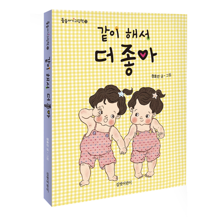 독자들에게 많은 사랑을 받았던 정호선 작가의 전작 《같아도 달라도 사랑해》에 이은 쌍둥이 그림책 2탄입니다. 전작에서는 겉모습이 꼭 닮은 두 아기의 특징을 보여 주었다면, 《같이 해서 더 좋아》는 두 아기의 신나는 하루를 그리며 배려와 나눔, 우정을 보여 주는 사랑스러운 그림책입니다.