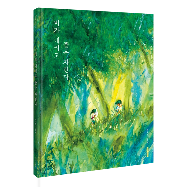 두 아이의 특별한 모험을 그린 《비가 내리고 풀은 자란다》에서는 이수연 작가의 14년 전의 초창기 투명 수채화 그림과 서정적인 문체가 담겨 있습니다. 표지의 맑은 수채화로 그려진 우거진 나무숲은 신비스러운 분위기를 자아내고, 학교와 숲 그리고 맥주 공간으로 공간이 바뀜에 따라 변하는 아이들의 심리와 관계를 세밀하게 묘사하며 이야기를 만들어갑니다.