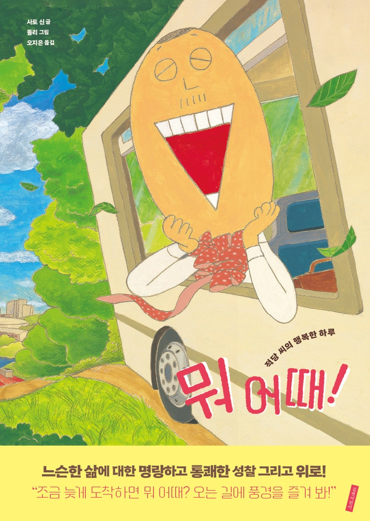 리브로 그림책 대상, MOE 그림책방 대상 등 여러 상을 수상한 작가 사토 신이 ‘적당 씨’를 주인공으로 하는 명랑한 이야기를 만들고 그림 작가 돌리가 만화적인 그림으로 유쾌함을 더했다. 살짝 감긴 눈에 활짝 웃는 얼굴을 한 적당 씨. 숨 돌릴 틈 없이 빠듯하게 일상을 살아가는 우리의 얼굴에서 볼 수 없는 여유가 느껴진다. 어떻게 해야 이렇게 즐겁게 살 수 있는 걸까?