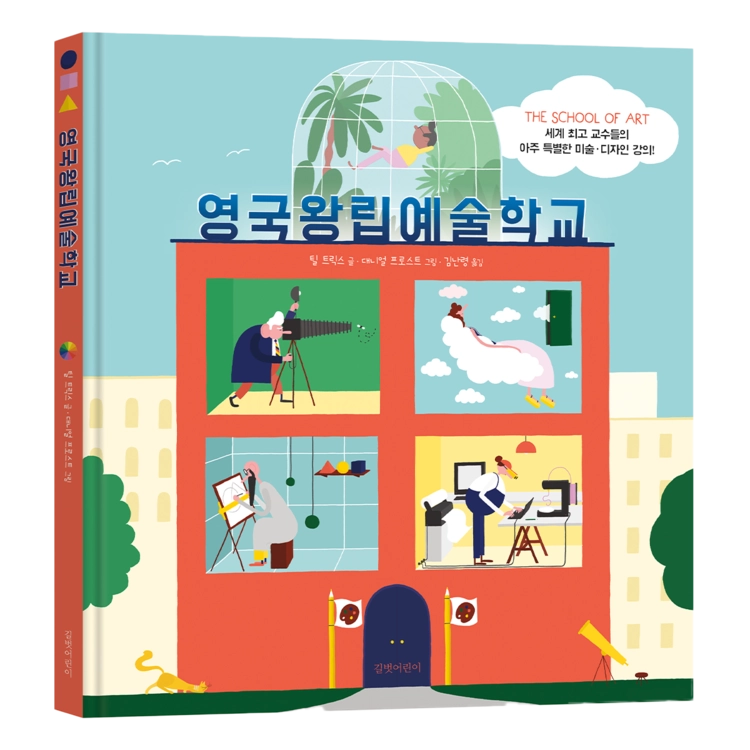 꿈꾸는 세계를 창조하는 어린이 예술가들을 위한 미술, 디자인 안내서『영국왕립예술학교』. 개성 넘치는 다섯 명의 교수님이 디자인과 예술에 대한 흥미로운 강의를 들려주는 책입니다. 아이디어 발상 수업을 맡은 반짝 교수님, 형태에 대해 알려주는 요모조모 교수님, 무엇이든 작품으로 만들어 내는 뚝딱 교수님, 오감을 최대한 활용해 예술 작품을 느끼고 만들도록 이끌어주는 호기심 교수님, 그리고 예술 작품이 단순히 아름다움을 창조하는 것을 넘어 우리의 삶과 환경을 이롭게 할 수 있도록 도와주는 파릇파릇 교수님까지 학생들이 스스로 답을 찾아갈 수 있도록 끊임없이 질문하고 함께 탐구할 수 있게 이끌어줍니다.