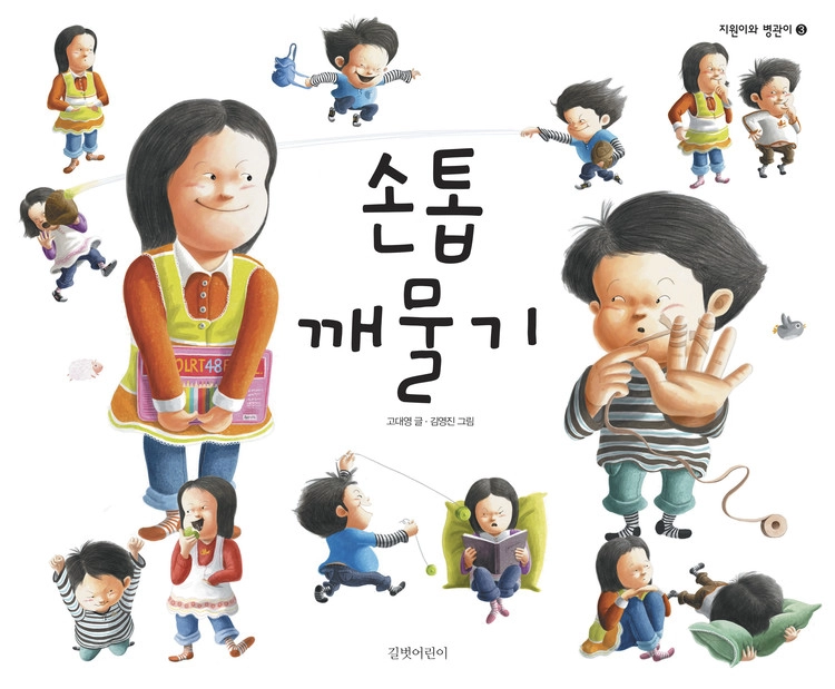 동생 손을 꼭 잡고 지하철을 탔던 듬직한 누나 지원이와 천방지축 동생 병관이를 주인공으로 한 또 한 권의 그림책이 출간되었습니다. 일상 속 생생한 에피소드를 포착, 발랄하고 재치있는 그림으로 담아 내 많은 어린이들의 사랑을 받고 있는 고대영-김영진 작가의 안정된 호흡이 한층 돋보이는 『손톱 깨물기』. 2006년 봄 『지하철을 타고서』와 2007년 봄 『용돈 주세요』에 이어 일 년 만에 다시 만나는 지원이와 병관이의 새로운 이야기를 담은 그림책을 소개합니다.