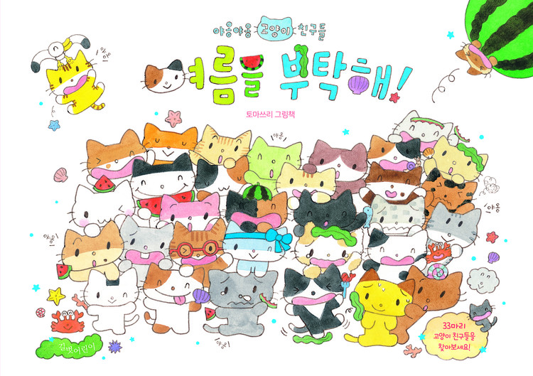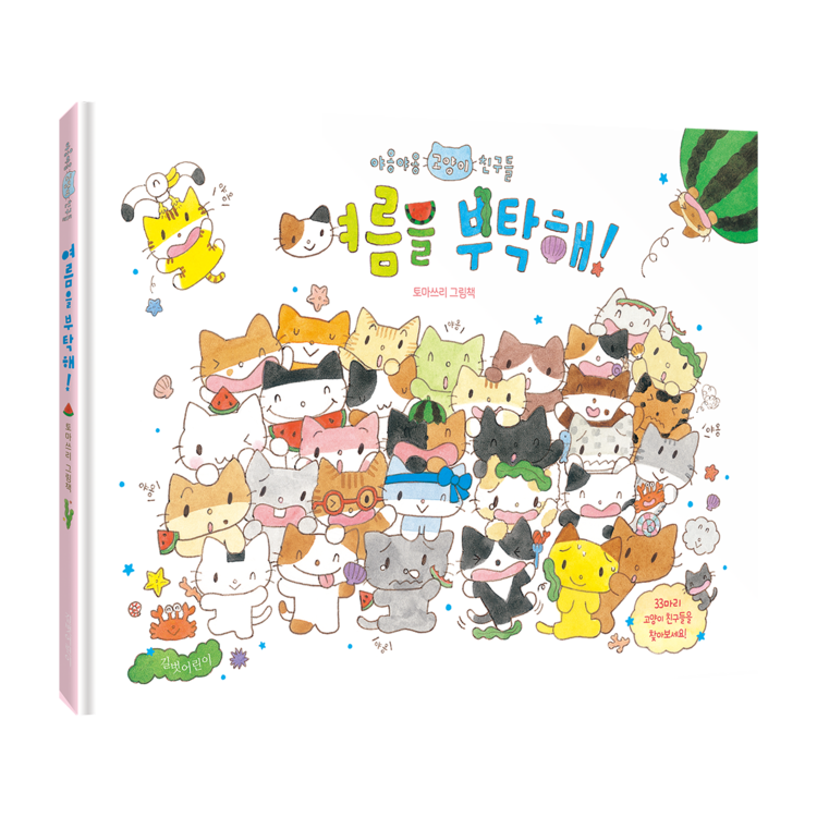 귀염뽀짝하고 감성적인 그림으로 우리나라뿐 아니라 대만과 일본에서도 사랑받고 있는 토마쓰리 작가가 이번에는 서른세 마리 고양이들과 함께 시~원한 여름 이야기를 들려줍니다. 《야옹야옹 고양이 친구들: 여름을 부탁해!》는 정 많은 바다표범 할머니의 따뜻한 사랑, 상상력 넘치는 꼬마 고양이들의 대소동, 그리고 바다 내음 가득한 여름의 순간들이 정성스럽게 담긴 그림책이에요. 숨은그림찾기와 숫자 세기 놀이도 함께할 수 있어, 아이들의 관찰력과 호기심을 자극하기에도 딱이랍니다! 이제 바다표범 할머니와 꼬마 고양이들의 여름 탐험을 따라가며 모두 함께 외쳐 보세요.
