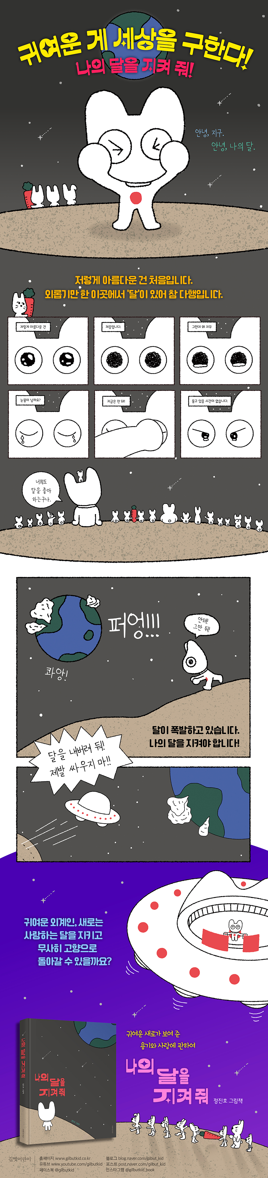 볼로냐 국제아동도서전에서 두 차례나 라가치상을 수상한 세계적인 그림책 작가 정진호가 이번에는 독창적이고 매력적인 캐릭터와 만화적 구성이 돋보이는 그래픽 노블 그림책 《나의 달을 지켜 줘》를 출간했습니다. 자전적 에세이 《꿈의 근육》에서 ‘달’에 대한 무한한 관심과 사랑을 보여 준 작가는, 토끼를 닮은 귀여운 외계 생명체 캐릭터 ‘새로’를 탄생시키며 자신이 품고 있던 애정을 듬뿍 담아 지구와 달의 이야기를 그려 냈습니다.