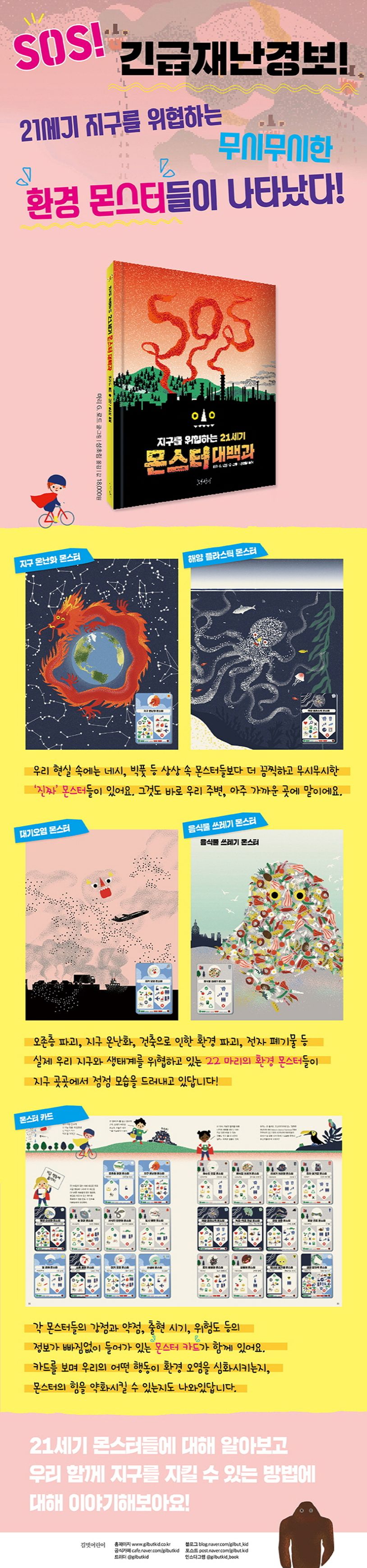 독자들은 책을 읽으며 그동안 미처 알지 못했거나 무심코 지나쳤던 환경 몬스터들의 특징들에 대해서 자세히 알게 될 것입니다. 또 책에 등장하지 않은 환경 오염에는 어떤 것들이 있는지 생각해 보고 몬스터들로부터 지구를 지키기 위해 우리가 해야 할 일들에 대해 함께 이야기를 나누어 볼 수 있는 기회가 될 것입니다.