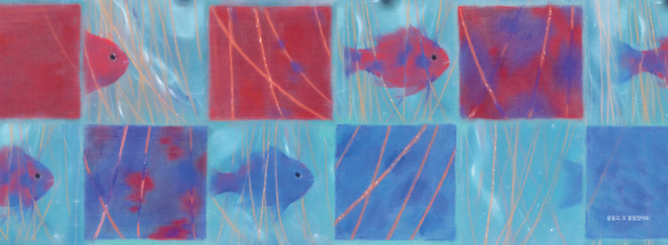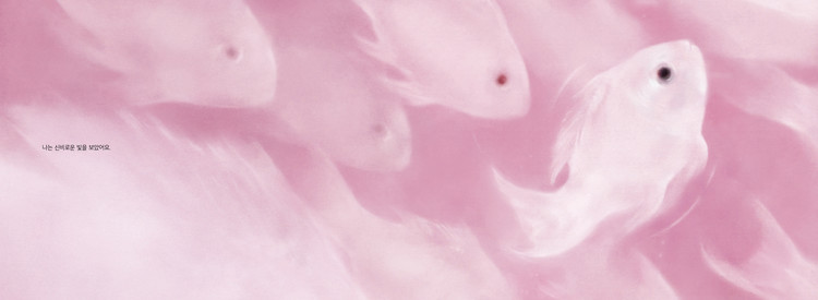 작가는 아름다운 분홍빛 바다 속에서 아이가 느꼈던 동경심과 닮고자 하는 욕망을 반짝이는 보석으로 나타내고 사포 위 부드러운 파스텔로 문지르고 비벼서 감각적이고 섬세하게 표현했습니다. 상황에 따라 하늘색, 보라색, 검은색 등으로 변화를 주어 색깔만으로도 주인공의 감정에 공감할 수 있도록 했습니다. 또한 아이가 알록달록한 몸속 이물질들을 토해 내고 멋진 물고기로 다시 태어나는 순간은 더없이 아름답고 감동적입니다.