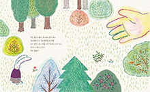 이 책은 ‘궁디팡팡 손’과 숲속 친구들 이야기를 통해 가까운 사람끼리 건네는 위로와 소통이 얼마나 소중한 일인지 알려 줍니다. 게다가 한 땀 한 땀 정성스러운 손뜨개와 파스텔톤의 수채화가 어우러진 그림은 더없이 따듯하고 포근해서 궁디팡팡 손과 함께 독자들의 마음을 위로하고 행복한 기분을 선사합니다.