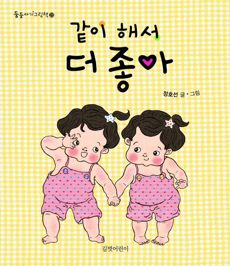 독자들에게 많은 사랑을 받았던 정호선 작가의 전작 《같아도 달라도 사랑해》에 이은 쌍둥이 그림책 2탄입니다. 전작에서는 겉모습이 꼭 닮은 두 아기의 특징을 보여 주었다면, 《같이 해서 더 좋아》는 두 아기의 신나는 하루를 그리며 배려와 나눔, 우정을 보여 주는 사랑스러운 그림책입니다.