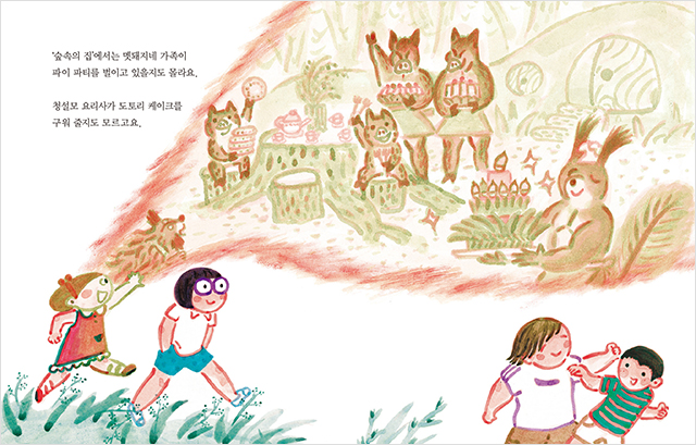분홍이와 친구들은 하루 종일 자연 속에서 뛰어놀면서 때로는 다치고, 때로는 모험을 하기도 하면서 몸도 마음도 쑥쑥 자랍니다. 독자들은 책을 읽으면서 자연스럽게 분홍이를 따라 숲을 뛰어 다니고, 나무 그네도 타고 마음껏 놀면서 신나는 경험을 하게 되지요. 이참에 우리 아이들에게 나무와 꽃이 가득한 자연 속에서 실컷 뛰어놀 수 있는 시간을 주면 어떨까요? 스마트폰도, 장난감도, 놀이 기구도 잠시 내려놓고 말이에요. 아마도 아이들은 금새 하늘, 바람, 새, 나무, 풀 등 주변에 가득 찬 신기한 놀잇감들을 발견하고 자신만의 놀이를 만들어가면서 시간 가는 줄 모르고 놀 게 분명하니까요!