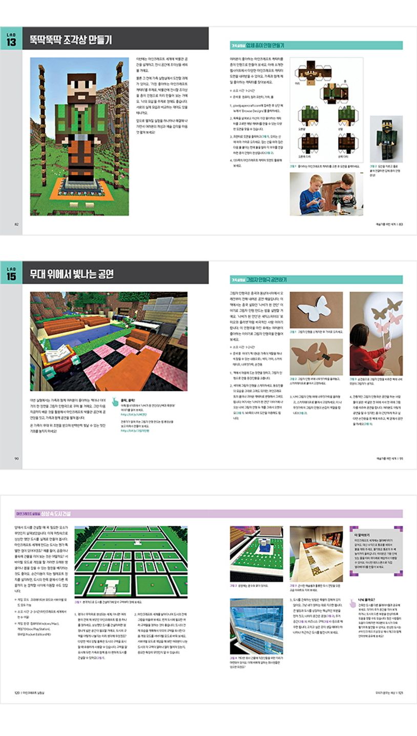 《마인크래프트 실험실》을 통해 선생님과 학생들은 모든 분야에서 시공간을 뛰어넘어 다양한 이야기와 사건들을 자유롭게 재창조할 수 있습니다. 아이들이 이 책을 통해 컴퓨터, 프로그래밍, 테크놀로지를 즐겁게 만나고, 컴퓨팅 사고력을 쑥쑥 키워 미래의 건강한 인재들로 성장할 수 있게 되길 바랍니다.