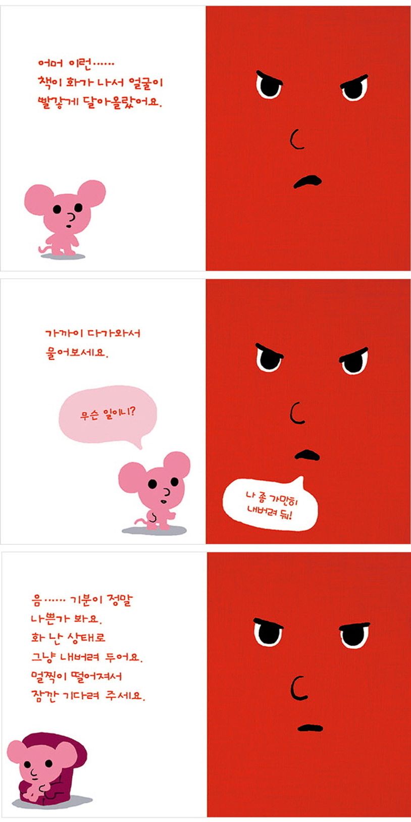 화가 잔뜩 나서 얼굴이 빨개진 책을 달래 줄까요?