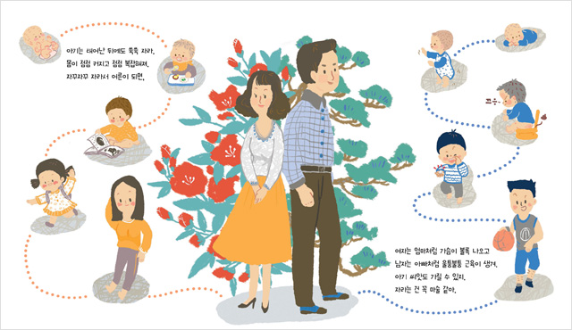 부모들은 ‘성장’ 이라는 단어만 들어도 귀가 쫑긋해집니다. 우리 아이 키가 얼마나 클지, 두뇌를 발달시키는데 어떤 학습법, 무슨 음식이 좋을지 마음이 쓰이기도 합니다. 성장과 발육 앞에 붙은 수많은 상업 문구와 수식들이 성장의 진정한 의미를 퇴색시키거나 부모를 조급하게 만들기도 하지요. 하지만 우리가 꼭 기억해야 할 것은 ‘아이는 스스로 자란다’는 겁니다. 날마다 스스로의 경험과 자극을 통해서만 그 다음으로 성장하는 존재이지요. 이 책의 마지막 글귀처럼 아이들이 ‘날마다 잘 먹고 잘 자고 잘 놀고 잘 배우면 진짜 진짜 멋진 어른’이 될 거라는 믿음을 갖고, 우리 아이가 나무가 가지를 뻗듯이 자유롭게 자라날 수 있도록 그 문을 활짝 열어 주세요. 다만 자신감을 잃지 않도록 멀리서 지켜봐 주고 격려해 주세요. 그러면 우리 아이들이 ‘마음껏 상상하고 곰곰이 생각’하면서 자신의 ‘생각 주머니’를 키워갈 수 있을 거예요. 이 책을 통해 성장의 참 의미를 자녀와 함께 나누며 탐구해 가는 소중한 시간을 갖게 되길 바랍니다.