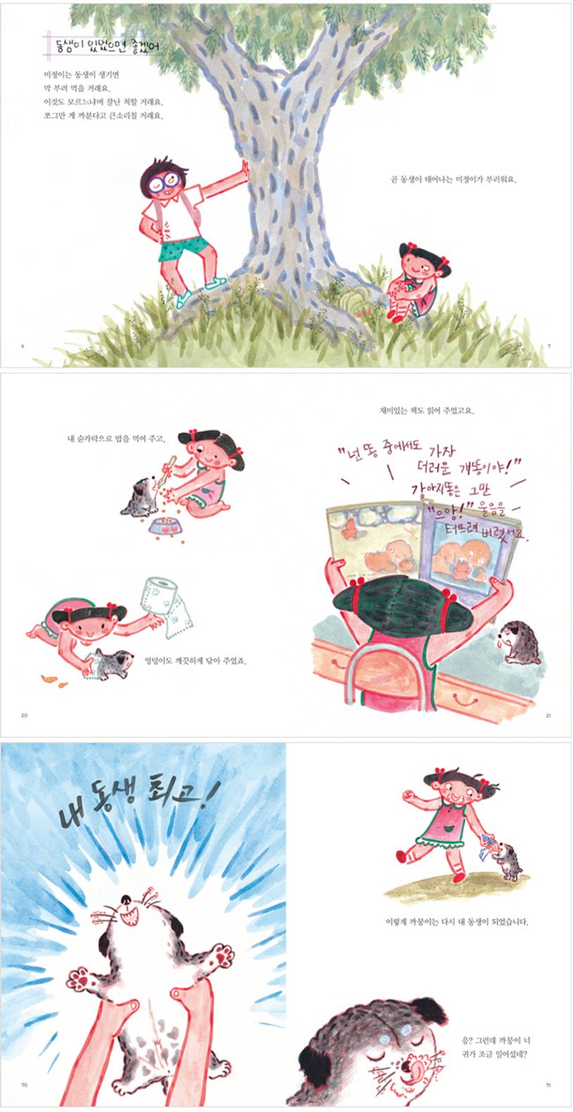 아이들에게 동생이란 알다가도 모를 존재지요. 한없이 귀엽다가도 부모님의 사랑을 동생 혼자 차지하는 걸 보면 마구 미워집니다. 동생이 어디든 졸졸 따라다닐 때는 귀찮다가도, 동생과 둘이서 함께 있으면 겁나는 일에도 당당히 맞설 용기가 생기기도 하고요.