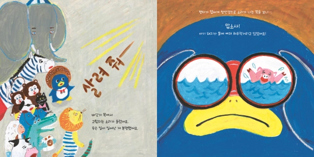 그때, 갑자기 해수욕장에서 “살려 줘!”하는 구조 요청이 들려와요. 그 소리에 조용히 도넛을 만들던 펭타는 잽싸게 목에 걸고 있던 쌍안경으로 위치를 파악하고, 머리 위의 도넛을 던져 멋지게 물에 빠진 돼지를 구해 내지요. 그 모습을 지켜본 동물들은 도넛이 실제로는 수상 구조에 필요한 튜브였음을 알게 되어요. 그리고 도넛을 만들던 펭타는 멋진 수상 구조대원이었다는 사실도요.