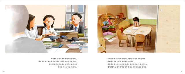 워킹맘의 바쁜 하루와 미안한 마음을 잘 나타낸 그림책입니다. 아이를 유치원에 데려다 주고 회사로 향했지만 혹시나 아이가 울고 있지 않을까 걱정하고, 아이가 좋아하는 음식이 점심메뉴로 나오자 주말에 만들어주겠다고 결심하고, 제시간에 퇴근하지 못해 속상한 마음에 괜히 아이를 봐주는 친정엄마에게 화를 내는 모습들은 보는 이의 마음을 짠하게 합니다. 아이를 생각하고 걱정하고 사랑하는 마음은 세상 모든 엄마가 같다는 것을 다시 한번 느낄 수 있습니다.