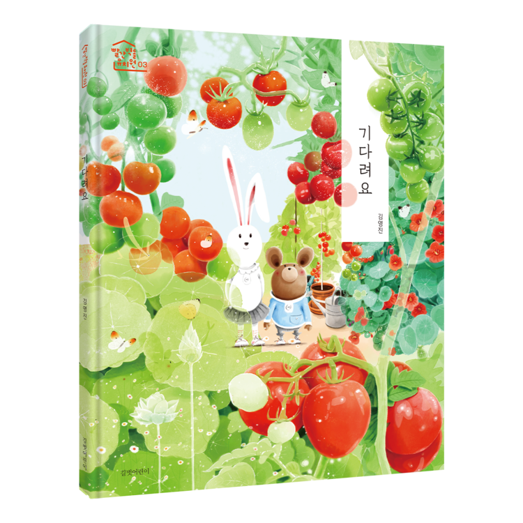 매력 만점 동물 친구들의 ‘빨간 벽돌 유치원’ 시리즈 세 번째 이야기 《기다려요》가 출간되었습니다. 뭐든 잘 하고 빨리 해결해야 직성이 풀리는 완벽주의 키토와 생각이 깊고 배려심 있는 연두의 이야기입니다. 유치원 텃밭 수업 시간, 키토는 누구보다 빠르고 멋지게 방울토마토를 키우려 합니다. 하지만 온갖 노력에도 키토의 화분은 잠잠하기만 하지요. 그때, 평소에 답답하다고 생각했던 연두가 다가와 ‘이 씨앗은 조금 약하게 태어난 거야’라며 기다려 줘야 한다고 말하는데…. 과연 키토는 연두의 말에 귀를 기울이고 멋지게 방울토마토를 키워낼 수 있을까요?!
