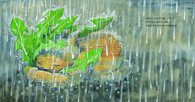 봄비 내리는 어느 날, 강아지똥은 민들레 싹의 이야기를 듣고 자신이 민들레에게 꼭 필요한 존재라는 것을 알게 됩니다. 그래서 강아지똥은 기쁜 마음으로 민들레 뿌리로 스며들어가 한 송이 아름다운 꽃으로 피어납니다. 세상에 쓸모없어 보이던 강아지똥은 누군가에게 소중한 존재로 변한 것이죠.