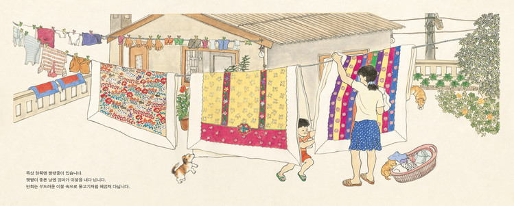 아이들이 우리의 색과 선을 살린 그림을 보면서 새로운 감성을 키울 수 있을 것입니다. 특히, 집안 구석구석에 있는 물건들까지 세밀하게 그려져서, 아이들은 거기 묻은 손때까지 느낄 수 있을 것입니다. 또한, 그림을 넘길 때마다 다음 페이지에 나올 장소를 먹빛으로 칠해 다음을 짐작할 수 있도록 한 점도 재미있습니다.