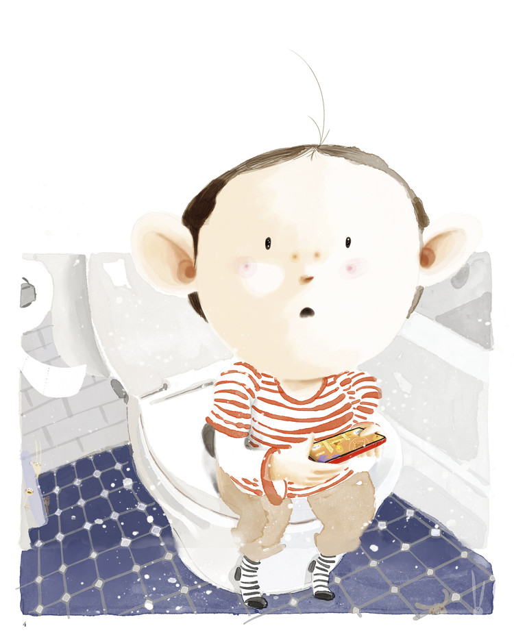 숙제를 하러 들어갔지만 금세 게임 생각에 집중하지 못하는 모습은 미워하려야 미워할 수 없는, 사랑스러운 말썽꾸러기 우리 아이들의 모습을 그대로 담고 있습니다. 또 그린이가 게임 속 캐릭터가 되어 신나게 미션을 수행하며 뛰어다니는 모습, 마치 첩보 영화의 한 장면처럼 엄마와 아빠가 앉아 있는 소파 뒤로 몰래 지나가는 모습에서는 아이들을 보는 작가의 기발한 상상력과 애정 어린 시선을 보여 주지요.