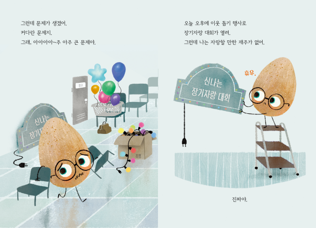 하지만 착한 달걀은 고민에 빠졌어요. 아무리 생각해도 자랑할 재능이 떠오르지 않았거든요. 그래서 조용히 관객석에서 친구들을 응원하려 했지만, 막상 공연이 시작되자 예상치 못한 일이 벌어졌어요.